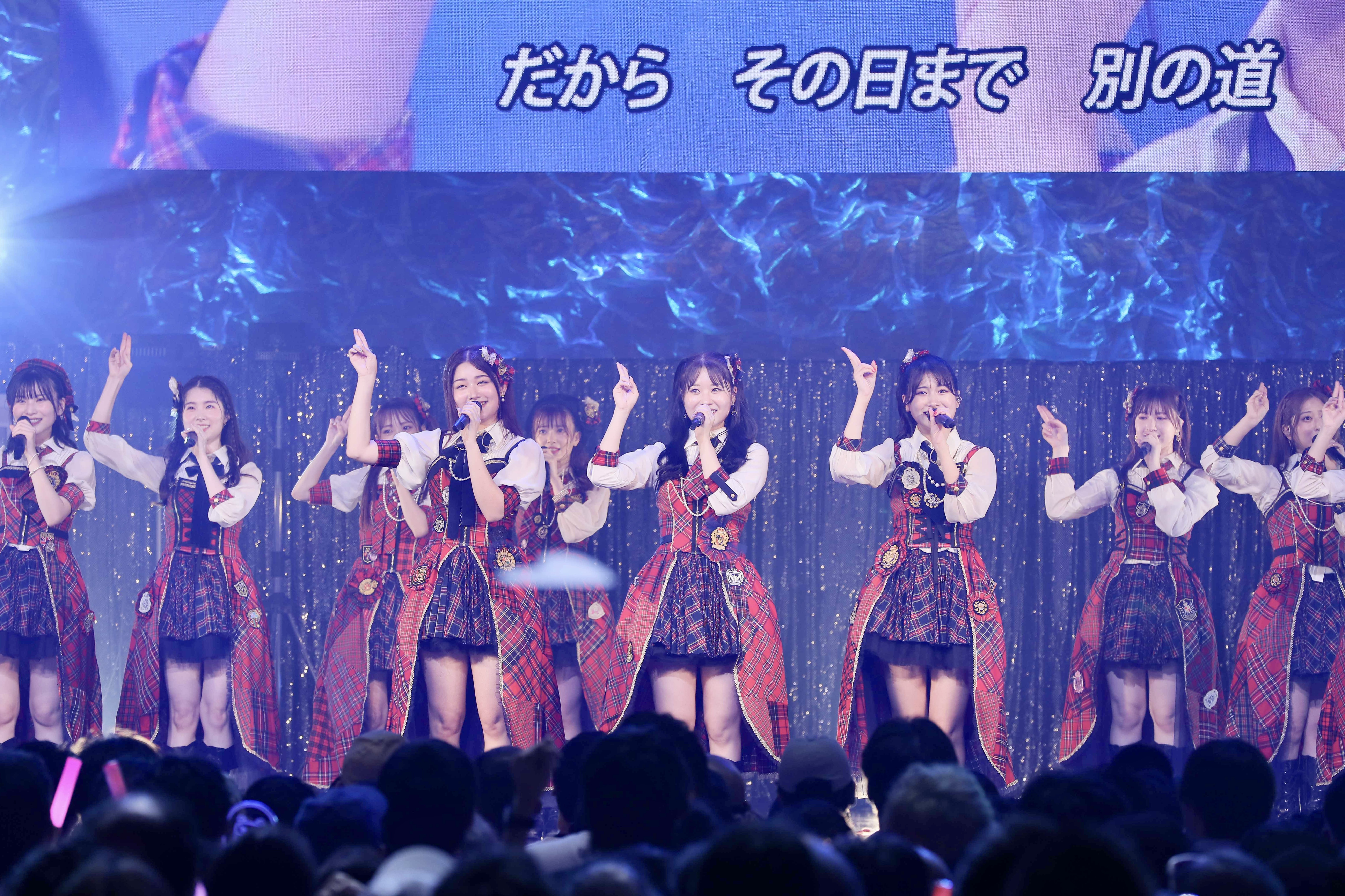 Nakanishi Chiyori dont il s'agit du dernier concert en tant qu'idole, a ajouté avec un sourire qu'elle est vraiment contente que sa bien aimée Team A soit sa dernière équipe, puis tous le monde s'est réuni autour de Nakanishi Chiyori, Takahashi Sayaka et Michieda Saki qui ont annoncé leur départ également pour chanter « Aozora no soba ni ite » dans une ambiance émouvante.
