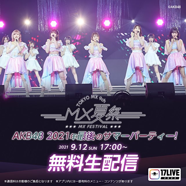 Le concert sera diffusé en direct et gratuitement sur 17LIVE, rendez vous à 17h00 JST sur le compte des AKB48 :